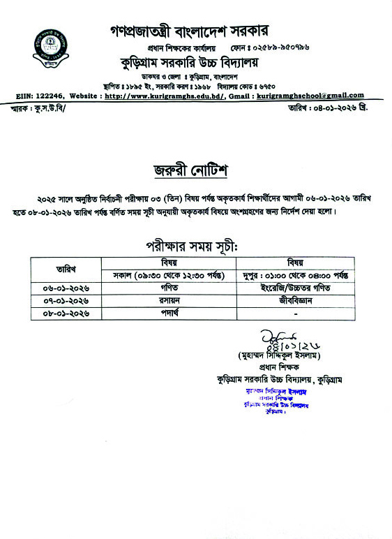 নির্বাচনী ২০২৫ পরীক্ষায় অকৃতকার্য শিক্ষার্থীদের পরীক্ষার সময়সূচী